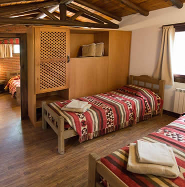 Cabañas con habitación matrimonial en planta baja y dormitorio con camas de una plaza, balconeado al star en planta alta.